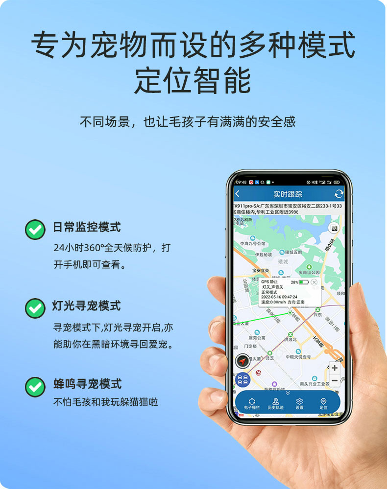 GPS追踪器 4G狗狗猫咪定位器宠物防走丢神器 +声光寻宠+游泳防水