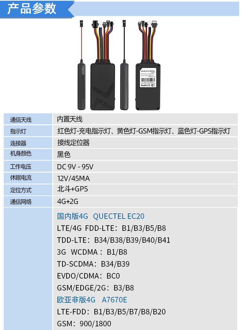 4G GPS北斗车载定位摩托电动车防盗追踪器